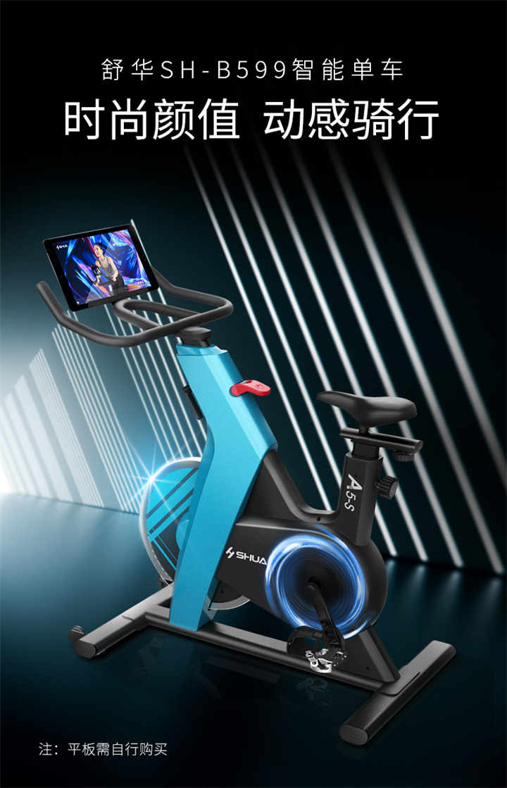 BB贝博艾弗森推荐健身器材-舒华动感单车SH-B599采用三角形车架搭配工字底座的稳定结构设计,骑行更稳定,承重可达125kg,手动磁控阻力设计,骑行时无物理摩擦,更顺畅静音,同时无需插电,使用更便捷。13kg磁控飞轮,足量均质,保障骑行时的惯性力及动平衡,骑行劲爽。