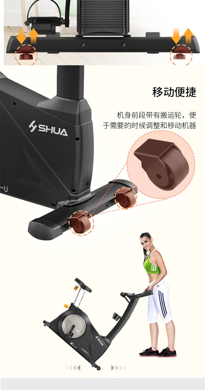 舒华立式商用健身车SH-B9100U(V10)触屏版拥有超大显示和操作屏幕, 可以任意设置阻力、时间和距离等参数,还可以即时显示心跳和转速等数据,同时,SH-B9100U提供多项科学运动处方,更轻松掌握运动节奏。