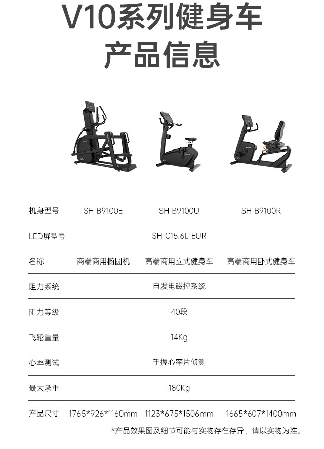商用椭圆机SH-B9100E(LED版)采用自发电方式,磁控阻力系统的阻力系统,可以设定40段阻力段,最大使用者体重为180kg,踏步跨距可达508mm,适用于大多数人,现在BB贝博艾弗森旗舰店都有这一款椭圆机,欢迎前来体验试机。