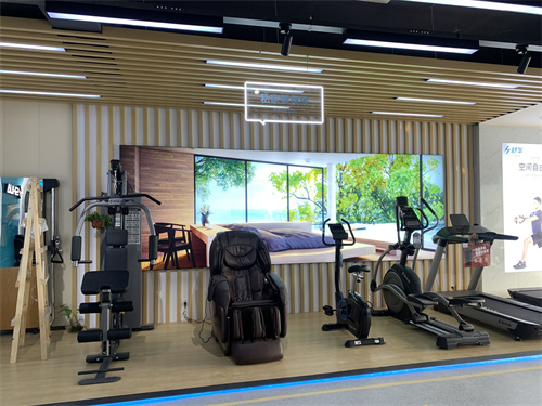 私家健身区是我们根据济南人当地的情形,选择了几款适用于我们的有氧和无氧、休闲的产品,比如单人站,占地面积小,而且适合个人使用的力量器械;跑步机、椭圆机和动感单车则重在强化我们的心肺能力,让我们耐力更好;壁挂式拉绳训练器占空间更小,可以及时纠正我们不太好的锻炼姿势,还可以根据自身能力,调整我们的锻炼强度。